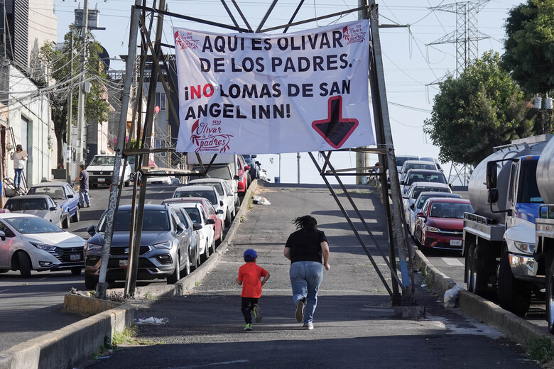 28 de marzo de 2026, colonia Olivar de los Padres, Ciudad de México. Desde mediados de 2025, una zona fue renombrada como “Lomas de San Ángel Inn”, cambio que, de acuerdo con vecinos, se realizó sin previo aviso y ha incrementado costos de servicios como predial, agua y luz, afectando a habitantes de larga data. ©Camila Ayala Benabib