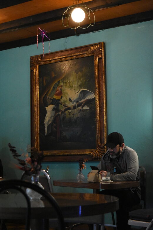10 de abril de 2026, Ciudad de México. En el habitual caos de la ciudad, los lugares que ofrecen un momento de calma parecen ser cada vez más escasos. Uno de los pocos clientes del café Guardatiempos prolonga su estadía lo más que puede permitírselo, envuelto en una atmósfera atemporal antes de volver a su cotidianidad capitalina ©Sergio Amaury Pérez