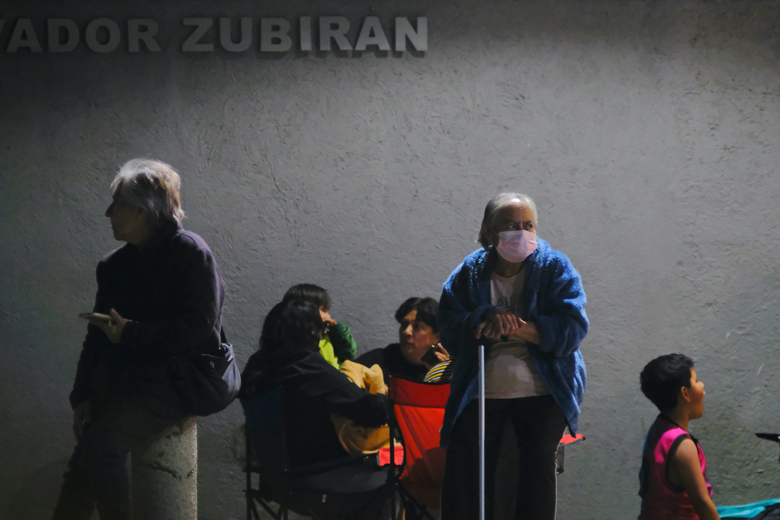 6 de abril de 2026, Ciudad de México. En el exterior del Hospital de Nutrición Salvador Zubirán, familias con niños y personas de la tercera edad esperan ser llamadas por guardias de seguridad para recibir noticias sobre sus familiares internados. ©Jorge Armando González