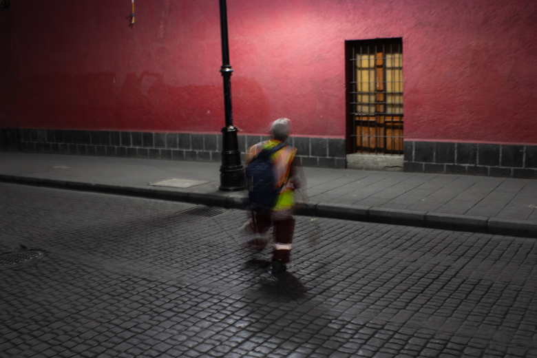 2 de abril de 2026, Ciudad de México. Un barrendero realiza su labor en la calle Isabel la Católica, en el Centro Histórico, zona transitada las 24 horas por personas que, mientras trabajan, se exponen a inseguridad y malos tratos. ©Pablo Bezares