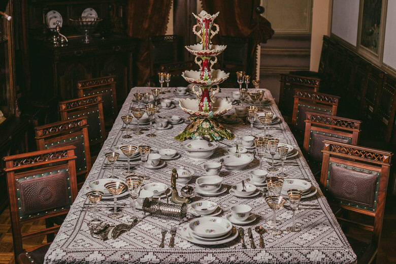 A través de ellas observamos detalles como el comedor, las salas de estar, baños, habitaciones de la época, así como vestimentas, documentos y acercamientos al ornamento y mosaicos característicos del Palacio.