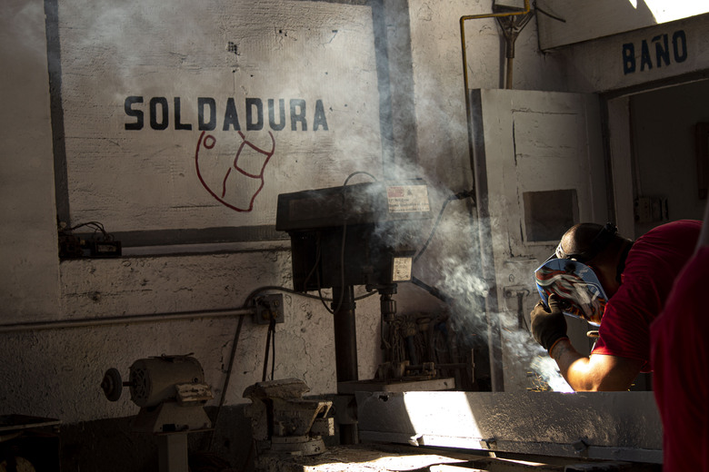 Con el mejor equipo de trabajo, como si fuera un taller profesional, internos de la cárcel de Mexicali, aprenden diversos oficios, como en este caso, el taller de soldadura.