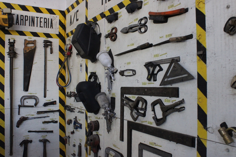 Los diferentes talleres de oficios en el centro cuentan con todas las herramientas necesarias. Para el visitante externo, sorprende el orden en el que se mantiene el equipo: todo en su lugar, así como el cuidado que se tiene de éste en el área de carpintería.