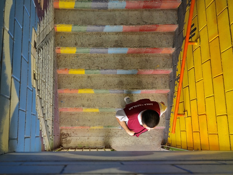 Las personas privadas de su libertad que muestran buen comportamiento pueden acceder al área escolar, donde se encuentran una biblioteca, salones de clase y talleres de manualidades. Estos espacios son supervisados por internos con experiencia en el área educativa. Ellos portan un chaleco distintivo y pueden moverse por la zona con total libertad.